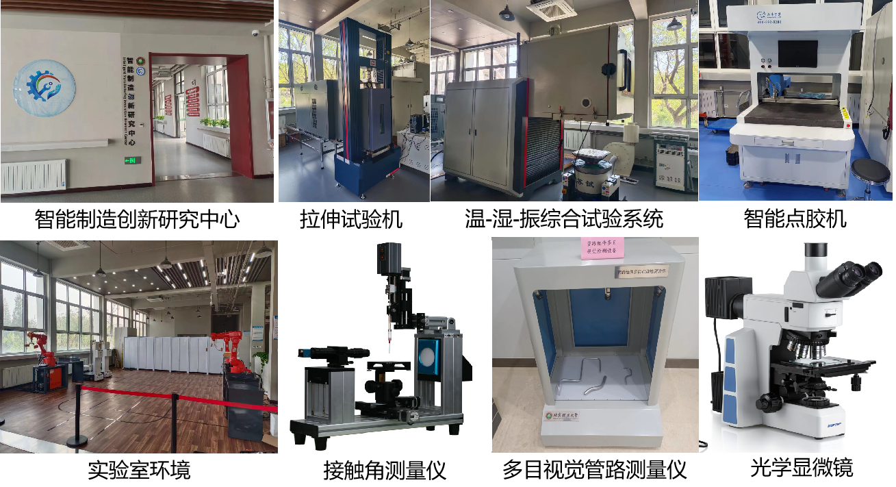 中心拥有接触角测量仪、综合试验系统、万能试验机、仿真工作站主机、智能点胶机、高速摄像机、装配现场管控处理终端系统、多目视觉管路测量仪、温度控制箱、光学金相显微镜、固化收缩率测试仪、螺栓装配扭拉试验机等试验和检测设备。