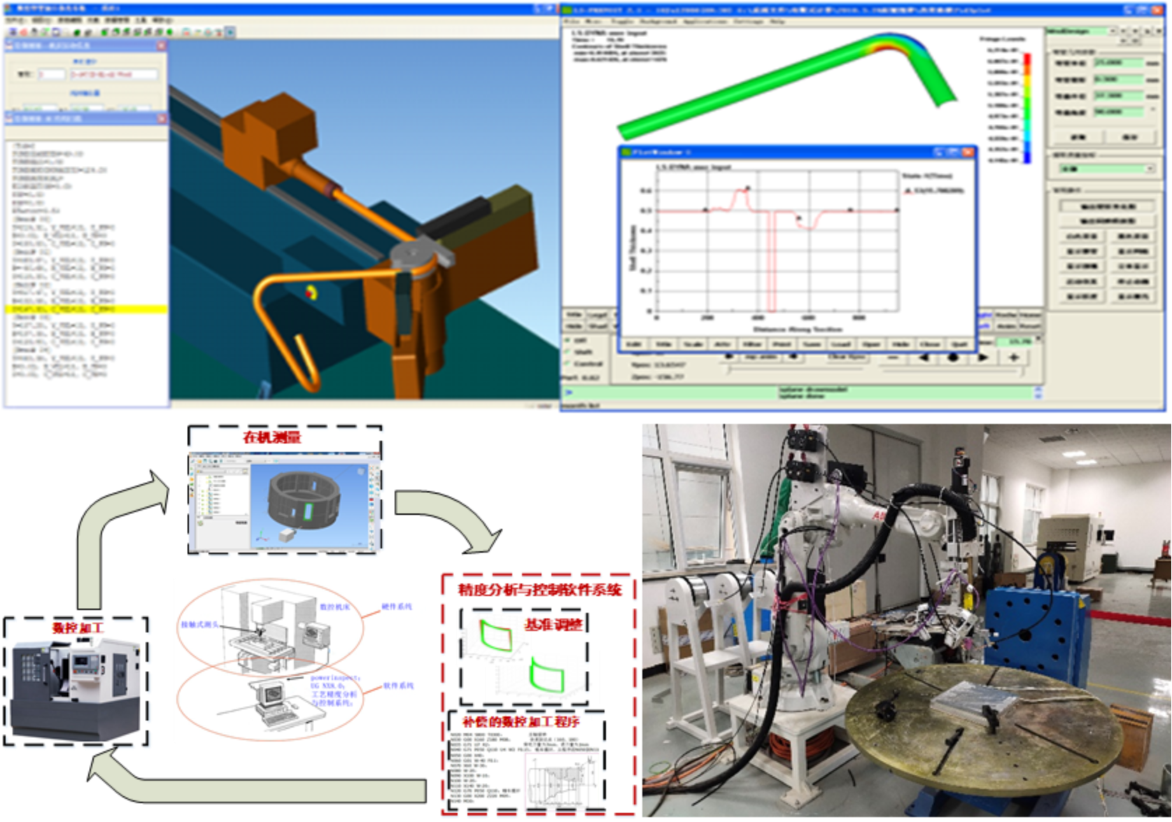 图13 导管数控弯曲塑性成形过程仿真、机械加工变形补偿及电弧增材制造