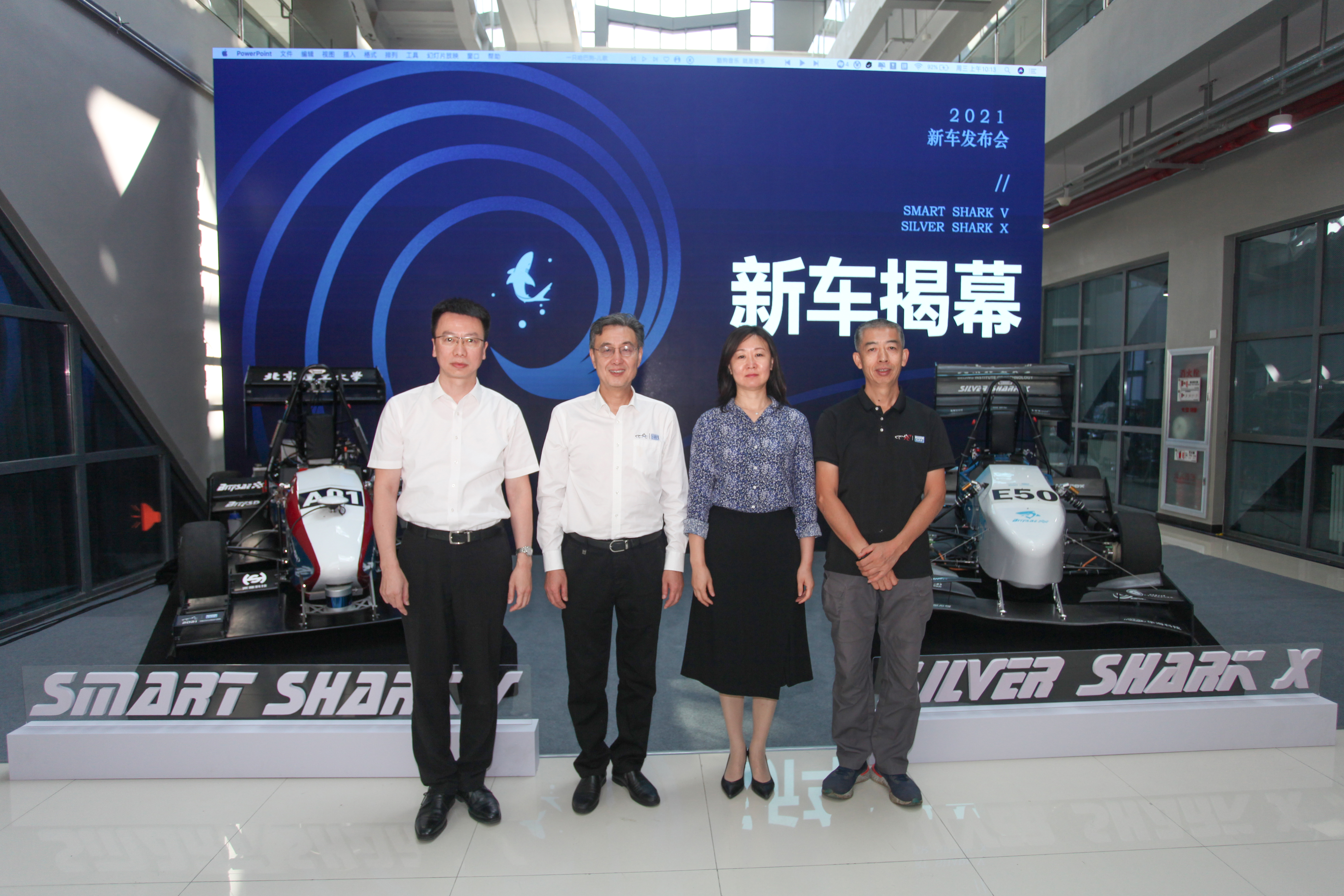 与会嘉宾首先观看了车队纪录片,随后包丽颖、闫建来携到场嘉宾与队员们一起为新车揭幕,电动方程式赛车“银鲨X”与无人驾驶方程式赛车“灰鲨Ⅴ”正式亮相。两队队长分别对新赛车的创新设计进行了汇报,并表达了带领车队坚持技术创新的坚定信念。